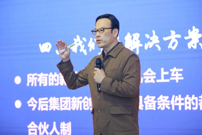 名誉董事长方陆和全体干部员工做了题为《向未来,赋新生》主题沟通。方总首先和大家沟通了"为什么选择现在交班?"一方面是希望企业保有激情和创新;另一方面是因为市场形势企稳,企业状况良性,无大的风险,我们的团队在经历了跌宕起伏的市场磨砺后,证明是一支能打硬仗和胜仗的队伍,并且他本人仍将在公司重大发展战略方面鼎力相助。其次,他和大家沟通了"交班要交什么?"主要有三个方面:一是不单是权力的交接,更是事业的传承;二是接班人不是个别领袖,而是整个管理团队,三是文化和机制的保障。最后,方总说有了好的文化、好的团队、好的机制,相信第三代领导集体定能带领大家再创辉煌,续写公司发展新篇章。
