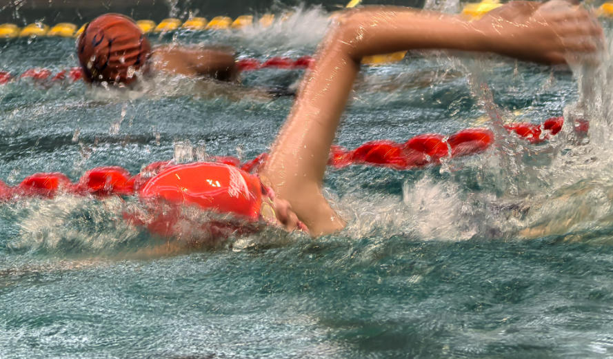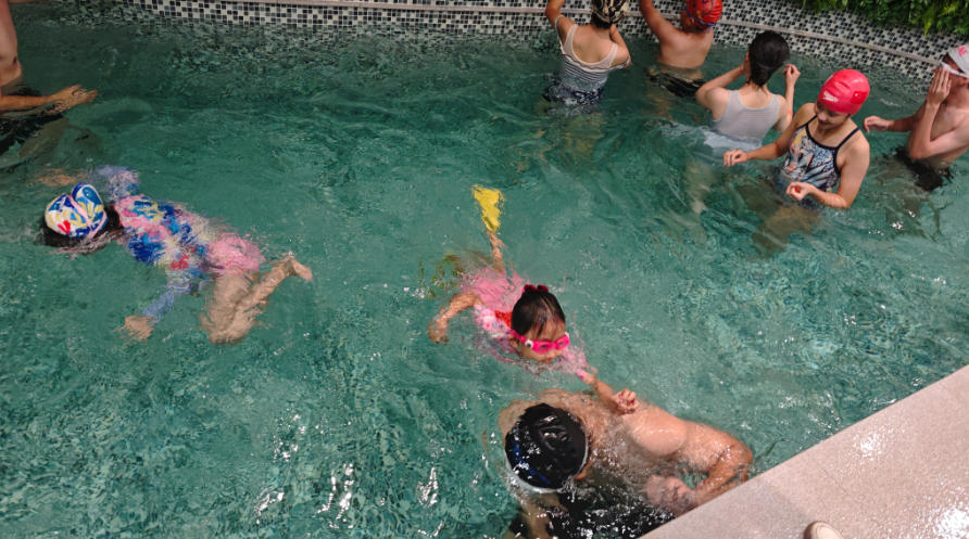 哨声一响!50米竞速的选手在赛道中如银鱼穿梭,劈波斩浪;水中接力更是上演默契大考,队友击掌接力,水花四溅中传递着彼此的信任和鼓励。绿队配合默契,实现逆袭取胜!