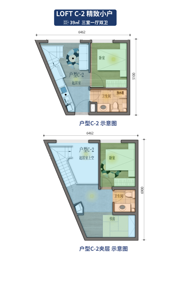 在售约39-59㎡宽境舒适LOFT,带楼板交付,三室双卫+双层动静分区,落地大明窗+双层独立开窗,低成本置业首选,宜居宜商宜投。