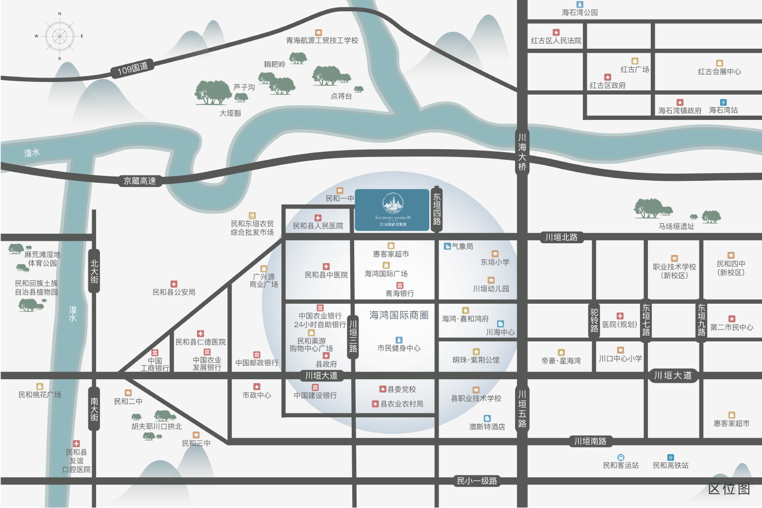 项目坐享全维醇熟配套。紧邻川垣北路、东垣四路等交通主干道,约2公里衔接京藏高速、109国道,立体交通四通八达;南侧紧邻人民公园,自然环境优渥;对街即达民和一中,约500米东垣小学,约2公里内民和二中、民和三中、职业技术学院;距民和县人民医院、民和县中医院仅约500米,护航居者健康;下楼可享项目自带约5000㎡的缤纷底商,海鸿国际广场、广兴源商业广场等提供更多元生活方式体验。